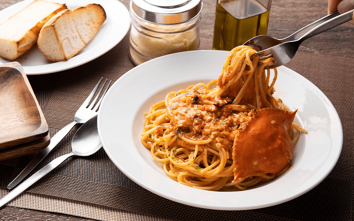 甘味とコクのあるここでしか味わえないスパゲティは、ボリュームも満点。シェアしても楽しめる南イタリアの陽気なトラットリア。